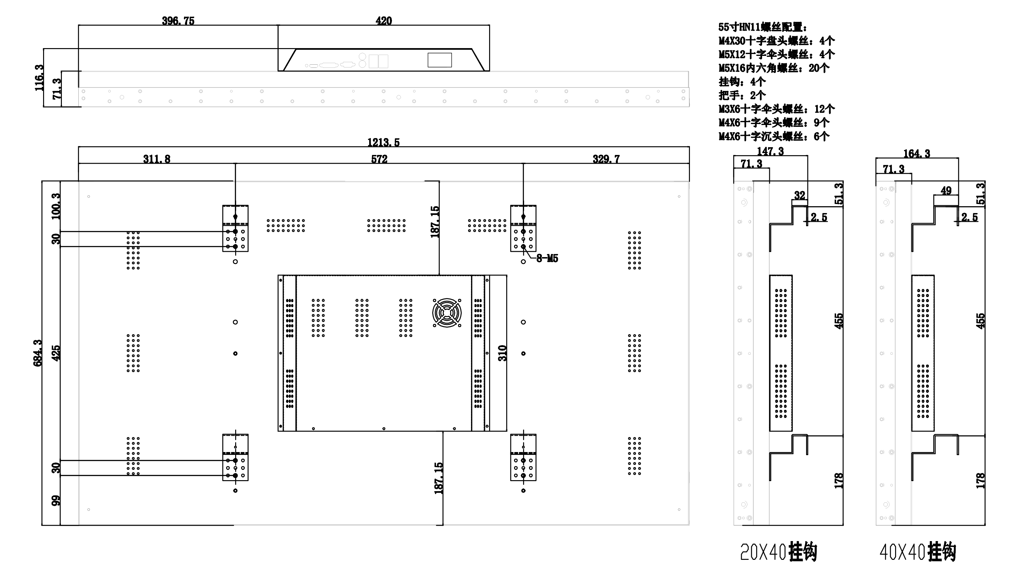 9.具有3D梳狀濾波器,動態降噪技術,并具有邊框補償功能,高度還原真實畫面采用三星/LG獨特的DID屏,既可橫向放置,也可縱向放置,更有“自動恒溫”調節功能,可自動檢測內部溫度的高低,從而啟動風扇降低內部溫度,超長壽命(6萬小時),運行穩定,沒有任何灼傷、損傷,維護成本低,獨特的模塊化設計,可拼作拼接墻使用,也可單獨使用。